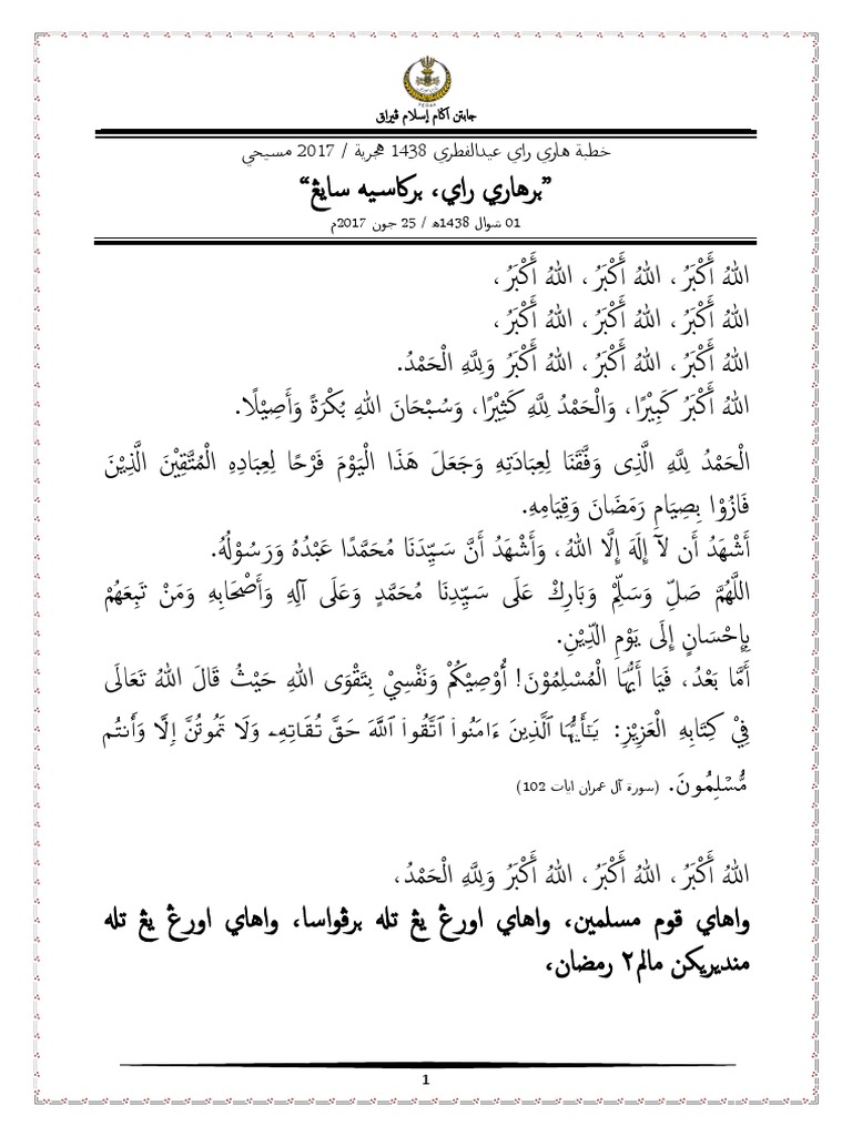 Khutbah Aidilfitri 1438h Berhari Raya Berkasih Sayang Jawi Pdf